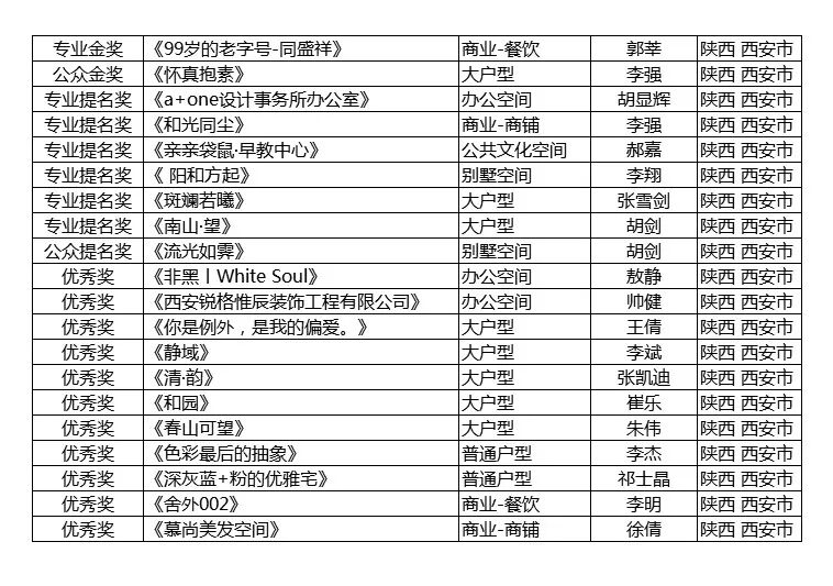 提名奖每项全国都是仅有的, 西安共6位设计师荣获7个专业提名奖,