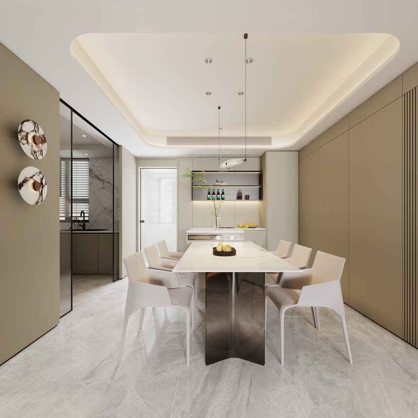 餐厅岛台的设计兼具实用和美观,更加扩展了空间功能的多样性。